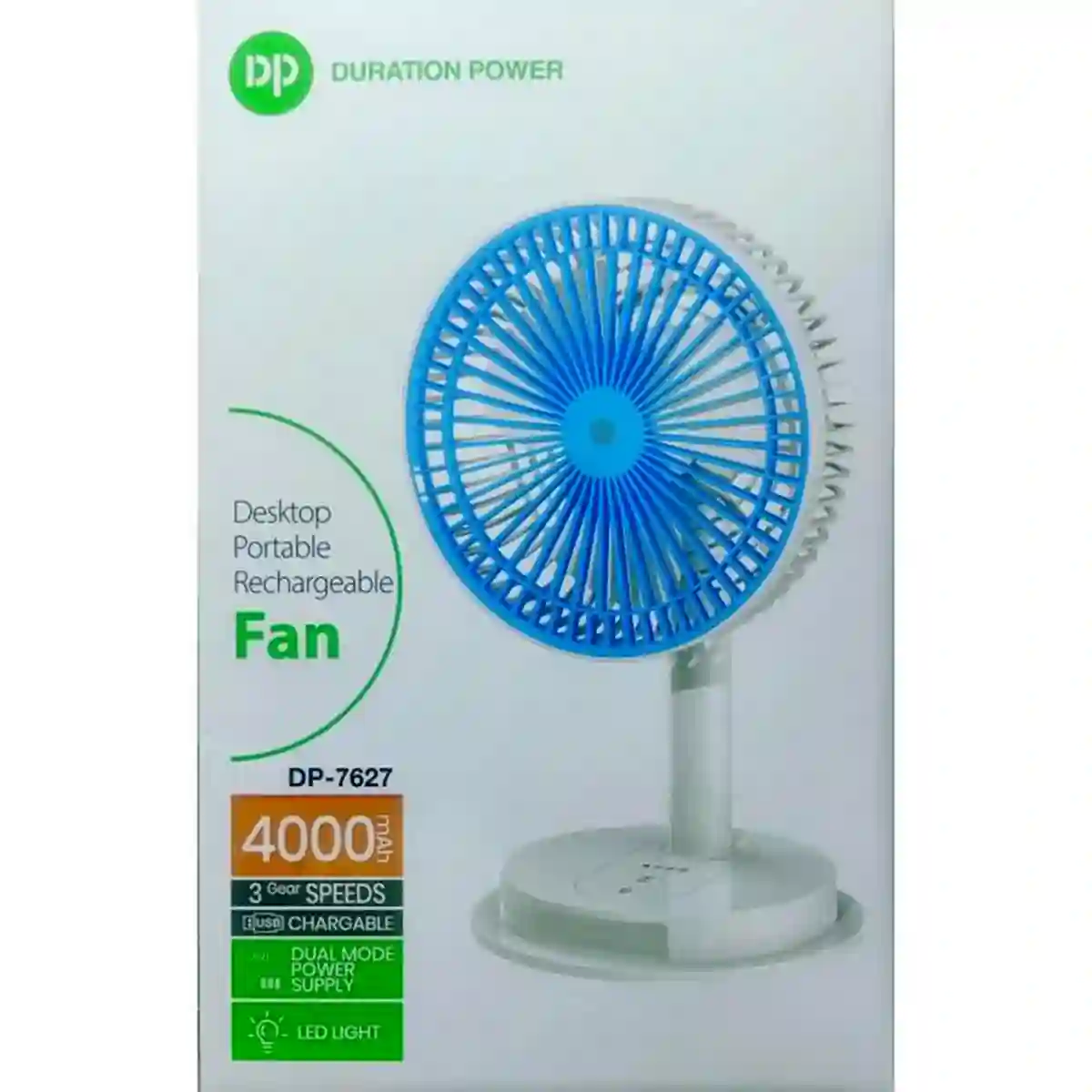 Dp 7627 (4000mAh Rechargeable Portable Usb Fan With Led Light)